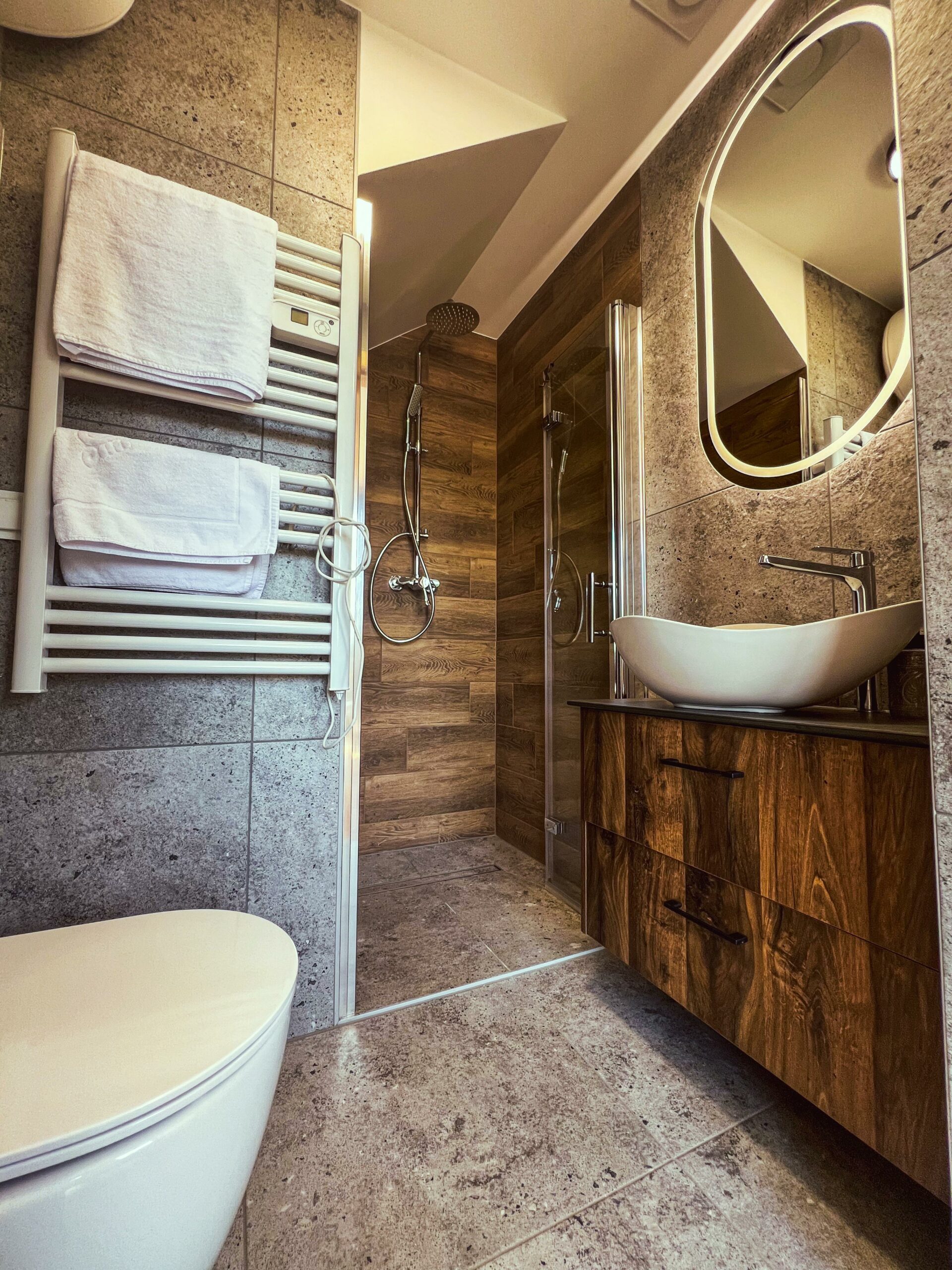 W domku znajdują się dwie osobne sypialnie dwuosobowe. W jednej z nich czeka na Was duże okno dachowe, przez które nocą można obserwować niebo pełne gwiazd. A że jesteśmy w górach – do gwiazd jest jakby bliżej. Bez problemu dostrzeżecie Wielki Wóz, Drogę Mleczną, a przy pełni księżyca… no cóż, może i całą galaktykę – kto wie?